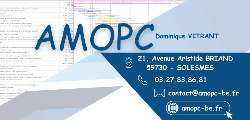 Avesnois & Grand Hainaut Vos projets, notre mission. Maîtrise d’œuvre, AMO et coordination de chantier. Nous cadrons délais, coûts et qualité, de l’idée à la réception. Découvrir nos services Nous contacter Nos Services Des missions claires, une méthode lisible, un chantier fluide. Moe - Maîtrise D'œuvreConception & pièces écrites, DCE & analyse des offres, DET, AOR & DOE. AMO — Assistance à Maîtrise d’OuvrageProgramme & budget, analyses & arbitrages, suivi coûts/délais/qualité. OPC — Planification & CoordinationOrdonnancement, pilotes multi‑lots, gestion des interfaces et risques. Economie de la ConstructionEstimation des coûts, analyse des offres et suivi budgétaire. Aide Administrative aux EntreprisesAccompagnement aux démarches, suivi de dossiers et gestion documentaire. Expertises Diagnostics techniques, pathologies et conformité réglementaire. Nos Projets Phare Quelques opérations représentatives : contexte, missions et résultats. Mise en Accessibilité - Batiment de culteVervins - Mission MOE Voir le Projet Remplacement de Châssis - Maison MitoyenneLille - Mission AMO Voir le Projet Reprise de Desordres sur Couverture - Bâtiments CollectifsBuire - Expertise pour Rapport Technique Voir le Projet Prêt à lancer votre projet ? On planifie, on coordonne, on livre. Demander un rendez-vous Marchés privés Bureaux, commerces, habitat collectif, tertiaire : AMO, MOE ou OPC à la carte. Marchés publics Collectivités & établissements : procédures, DCE, phasage scolaire, sécurité et accessibilité. Parlons de votre projet Réponse sous 48h ouvrées. Nom Organisation Email Téléphone Type de Projet Message Envoyer la demande NOUS SOMMES LÀ POUR VOUS !